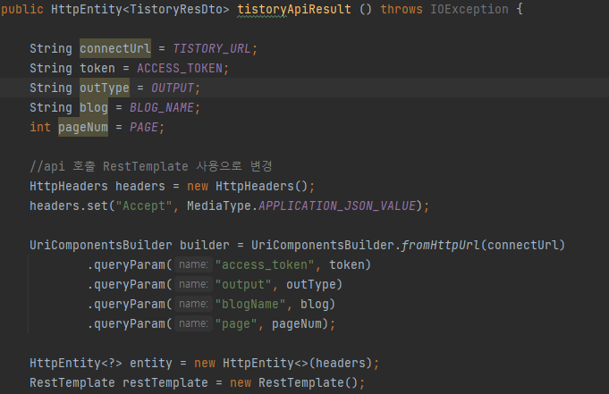 위에서 이미 builder에 넣었기 때문에 형식에 맞춰서 넣어주면 됐다.