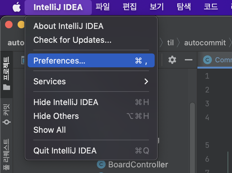 intelliJ IDEA 에서 Preferences 를 들어가면