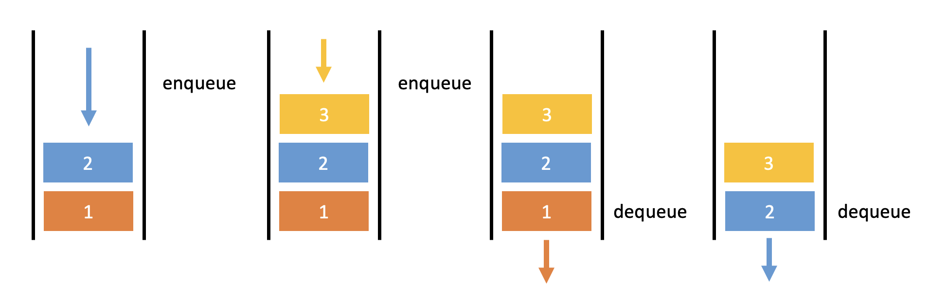 큐에서 데이터를 꺼낼 때는 가장 아래, 즉 가장 오래된 데이터부터 꺼낸다.